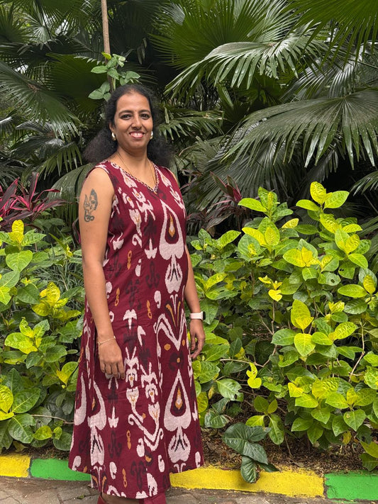 Sleeveless Maroon Kurta Pant Set – Graceful Power in Minimalist Style Make a confident style statement with this sleeveless maroon kurta pant set, crafted from breathable cotton for all‑day ease. The kurta features a sleek silhouette with a wide neckline and clean finish, while the matching straight‑fit pants offer comfort...