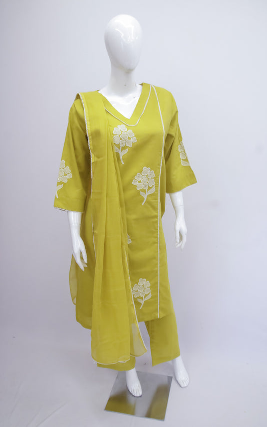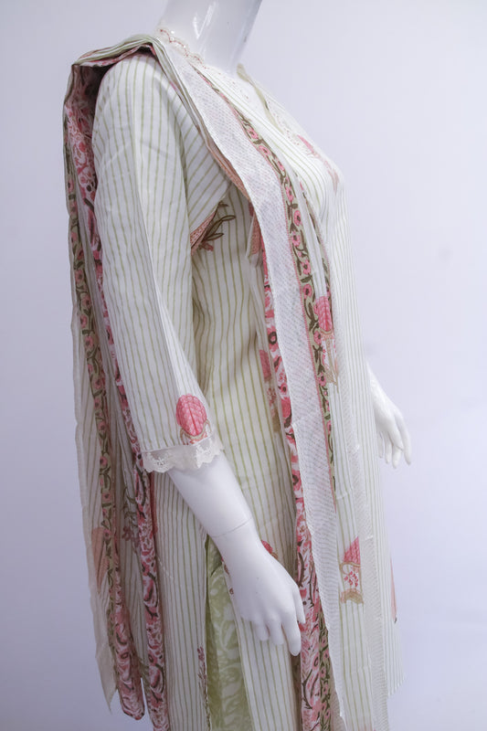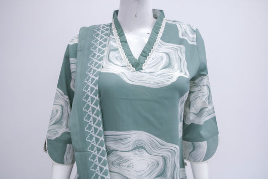 Blue Floral Cotton Dupatta Set – Kurta & Palazzo