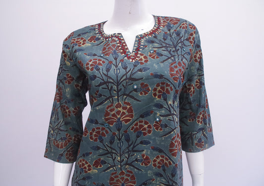 Rust Red Printed Cotton Kurti Set with Tie-Up Detail Elegant rust red cotton kurta set featuring a stylish asymmetric yoke with ethnic prints and tie-up detail. Made from breathable cotton fabric for all-day comfort and easy movement.Perfect for office wear, casual outings, and everyday ethnic styling. Product Details Color: Rust Red...